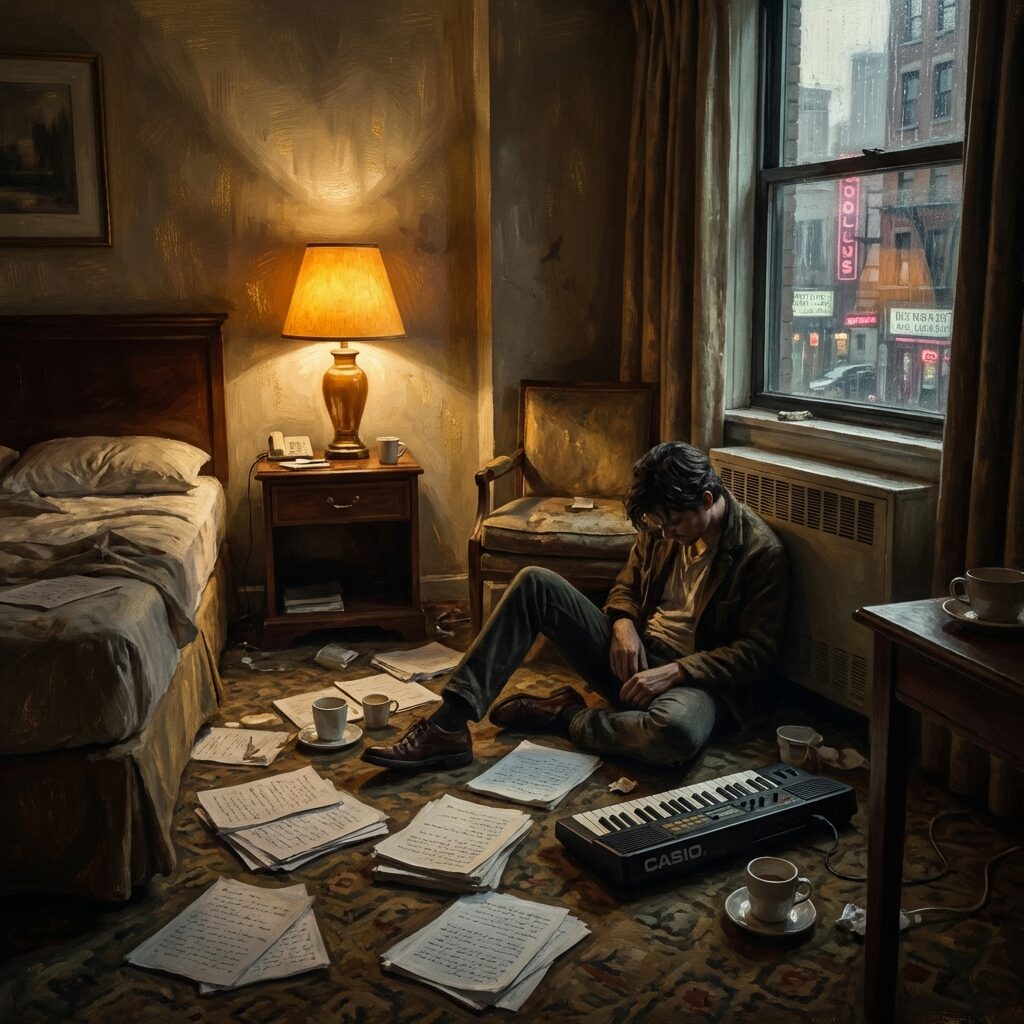 And then there’s the Royalton Hotel floor. Cohen on the carpet, in his underwear, head-banging, notebooks everywhere. It’s almost too neat as an image for what songwriting actually costs, the guy who spent five years polishing verses he’d never use, now physically prostrate, trying to wrench the last ones into shape. He wasn’t dashing off lyrics on the back of a napkin. He was trying to earn something from the song, and the song wasn’t giving it up easy.